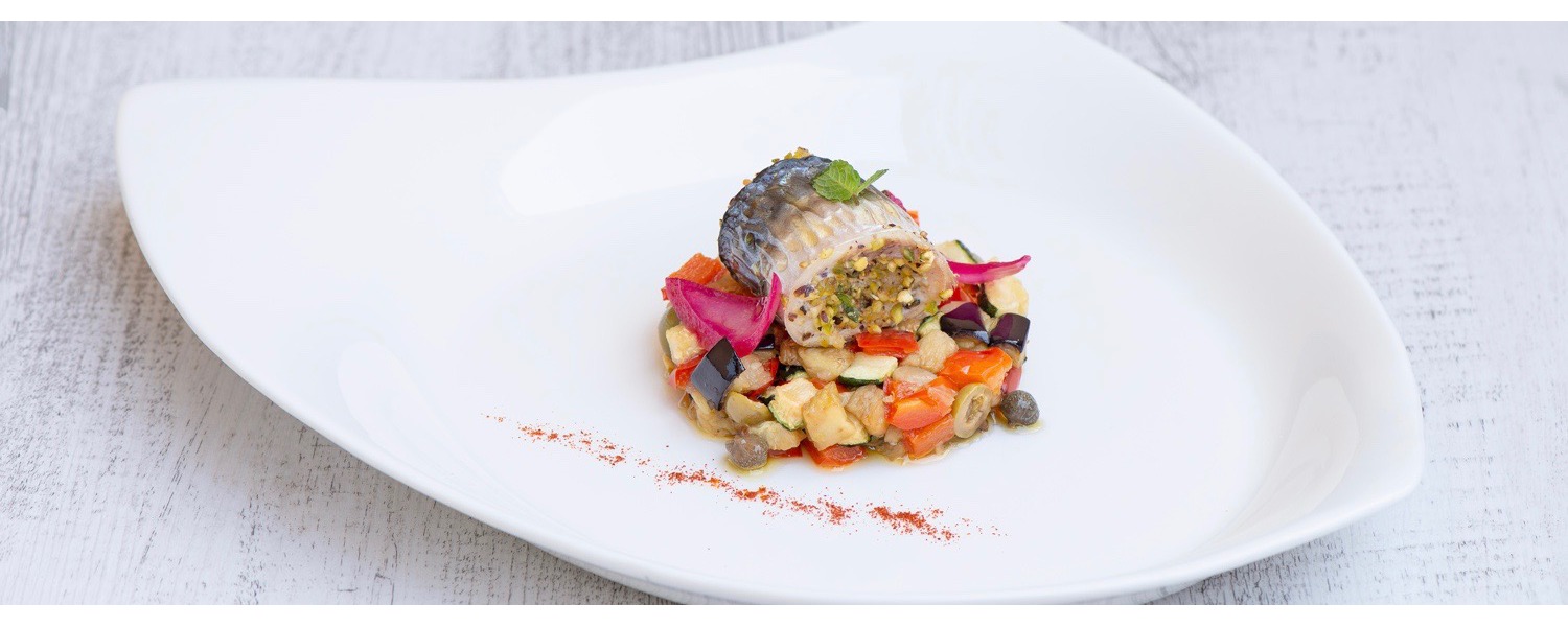 Involtini Di Sgombro Su Caponata Di Verdure